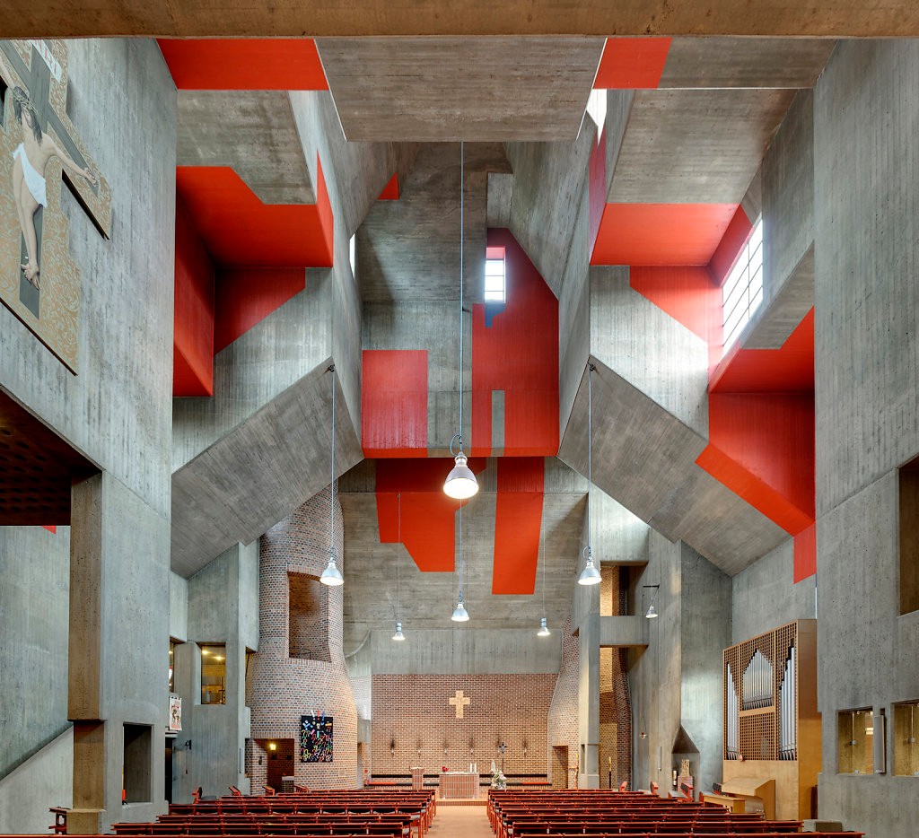 Kirche St. Johannes XXIII Köln, Kirche der katholischen Hochschulgemeinde Köln 60er Jahre Betonkirche im Stil des Brutalismus
